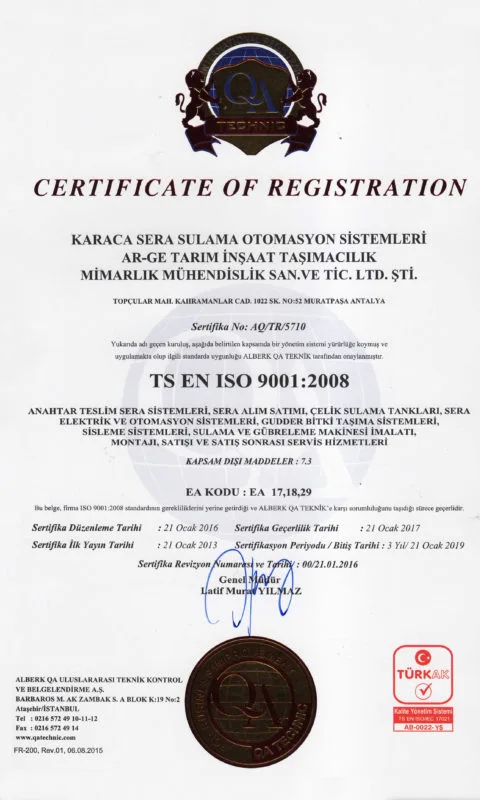 ISO 9001-2008, CE ve GOST-R belgesi olan şirketimiz portföyünde bulunan ürünler konusunda rekabetçi ulusal ve uluslar arası pazarlarda daha aktif çalışabilmek için aşağıdaki presnsipleri benimsemiştir.