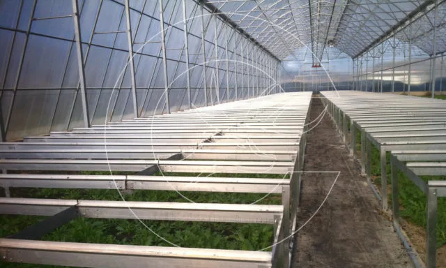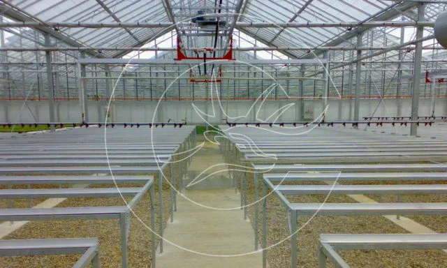 The use of tables for seedlings increases the yield, provides practicality and ease of care, helps to control the health of plants. The height of the tables is 70-85 cm. They are installed to the left and right of the service tracks. Manufactured from galvanized steel and aluminum.